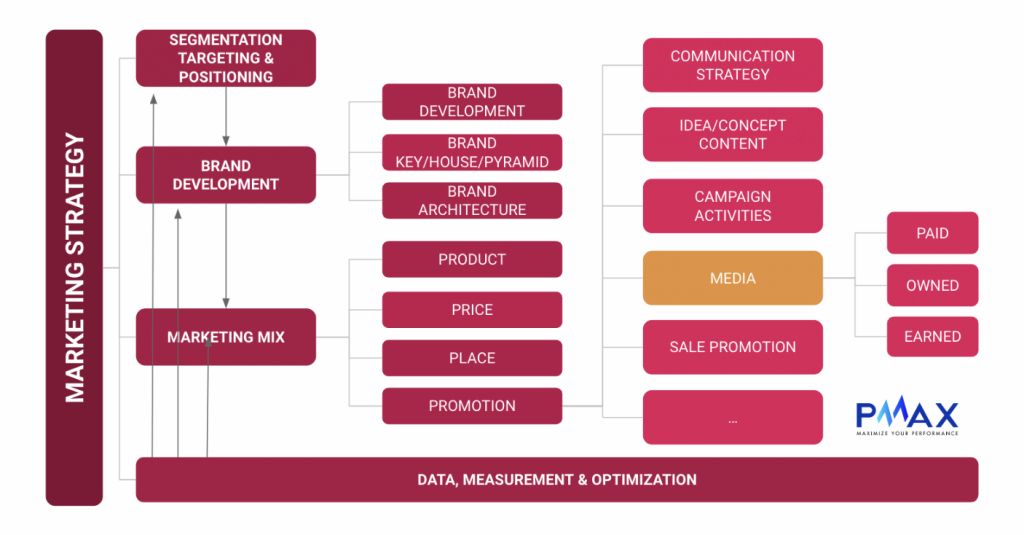 Chiến lược marketing dựa trên chiến lược doanh nghiệp và bao gồm các kế
