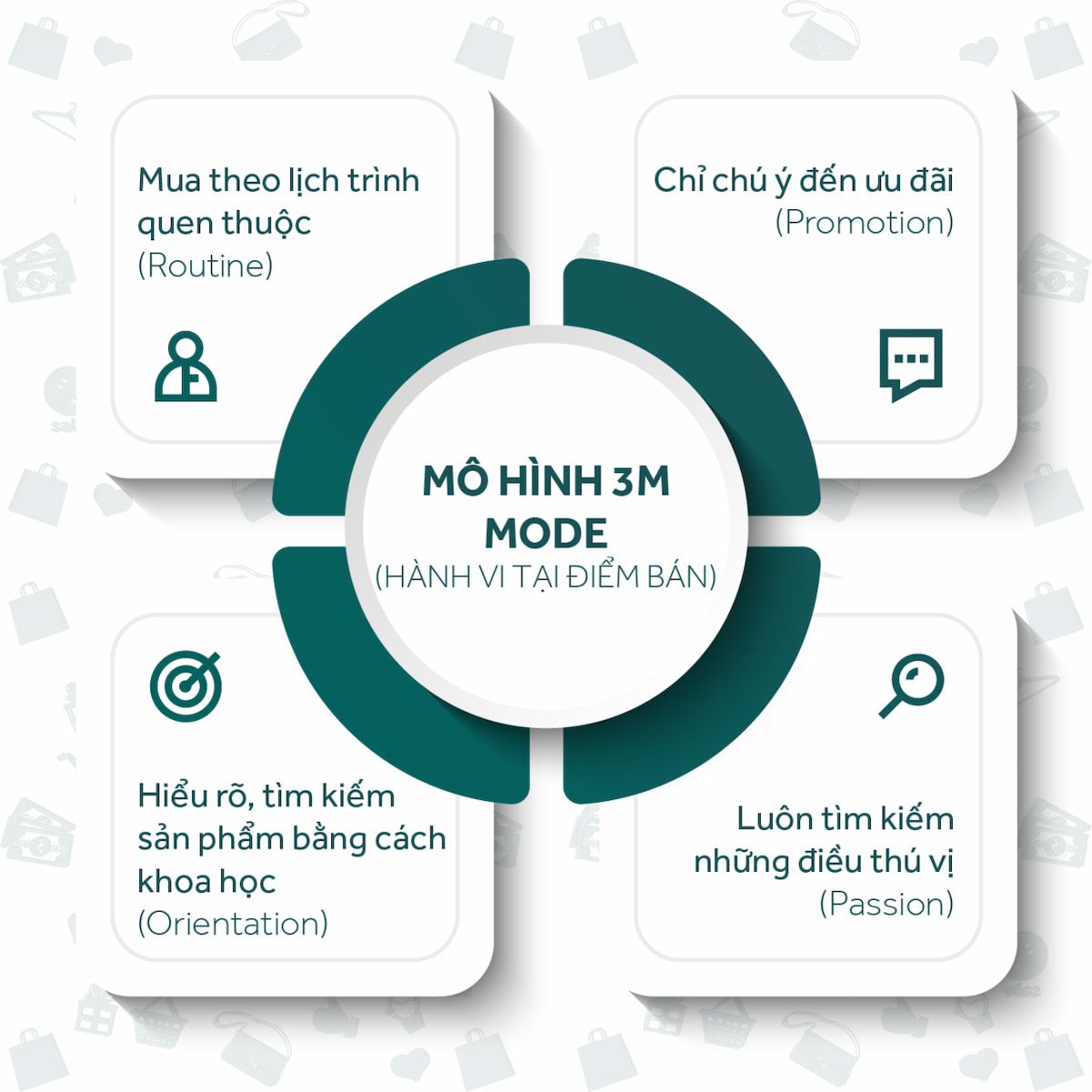 Mô hình 3M là một công cụ hữu ích để hiểu hành vi và tâm lý Shopper. Mô hình này chia hành trình mua hàng của Shopper thành 5 giai đoạn và phân tích ba yếu tố chính trong quá trình này:
