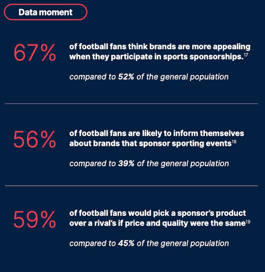 Đặc biệt, người hâm mộ trẻ tuổi quan tâm đến việc xem các trận đấu trực tiếp và nội dung bên lề sân cỏ. Các nhà phát sóng nên tập trung vào việc cung cấp những nội dung này để đáp ứng nhu cầu của nhóm đối tượng quan trọng này.