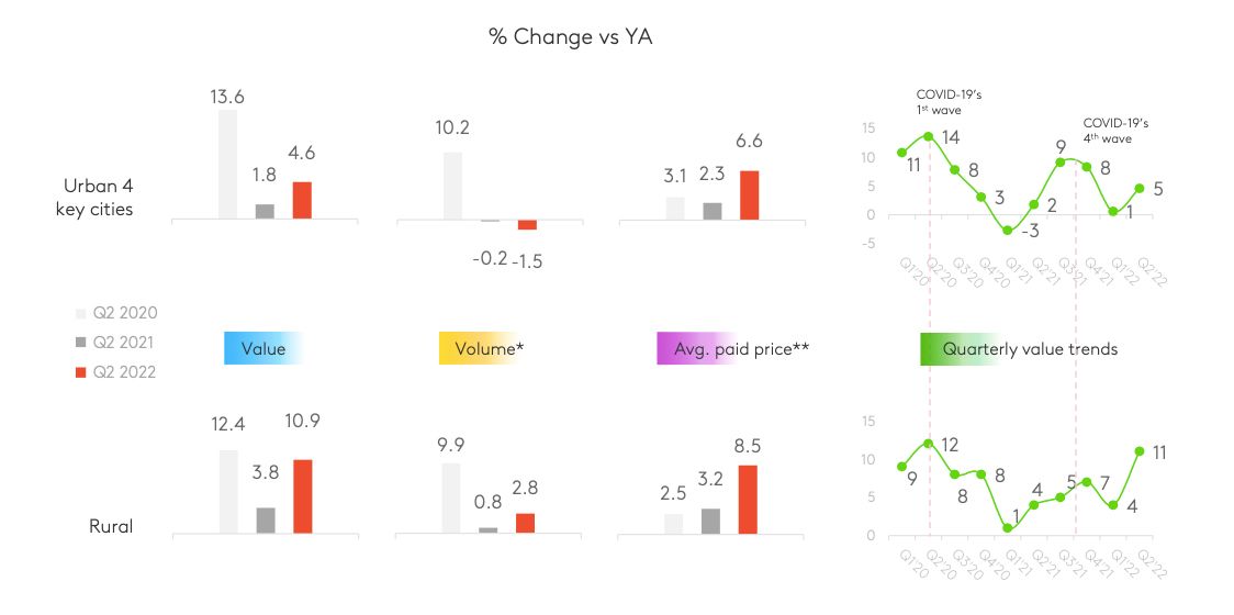 Các kênh bán lẻ mới nổi như Online và Ministore tiếp tục củng cố vị thế ở cả thành phố và nông thôn. Đại siêu thị ở nông thôn có sự phục hồi mạnh mẽ, trong khi các mô hình kinh doanh lớn ở thành thị không có sự tăng trưởng đáng kể.