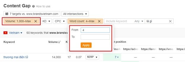 - Bước 3: Lọc dữ liệu: Lọc dữ liệu để tìm các ý tưởng có giá trị, chẳng hạn như từ khóa dài hơn và có lượng tìm kiếm cao.
