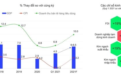 Tình hình kinh tế Việt Nam Nền kinh tế Việt Nam tiếp tục phục hồi trong quý I/2021, với chỉ số giá tiêu dùng ở mức thấp nhất trong 20 năm. FDI cũng tăng trưởng đáng kể trong 3 tháng đầu năm. Tuy nhiên, số doanh nghiệp tạm dừng kinh doanh vẫn là một thách […]