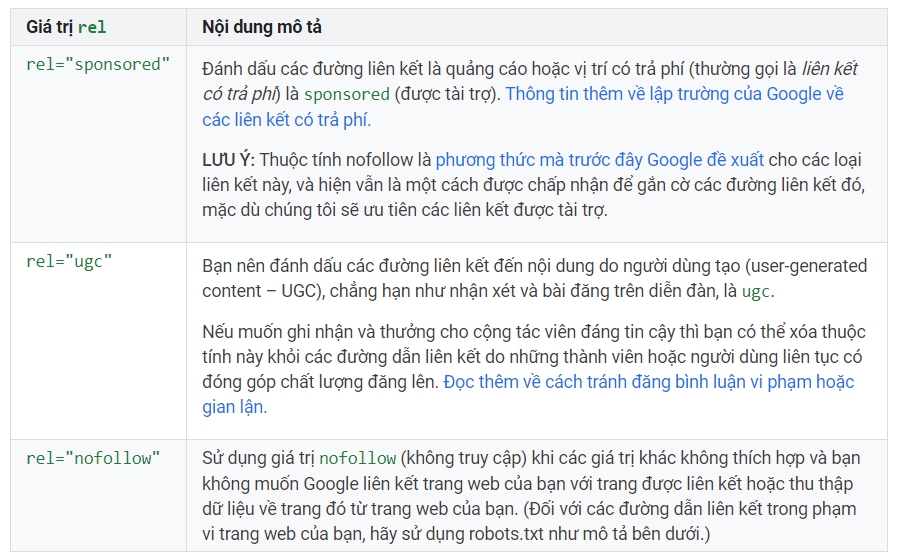 Không Sử dụng Nofollow trong Liên kết Được Tài trợ